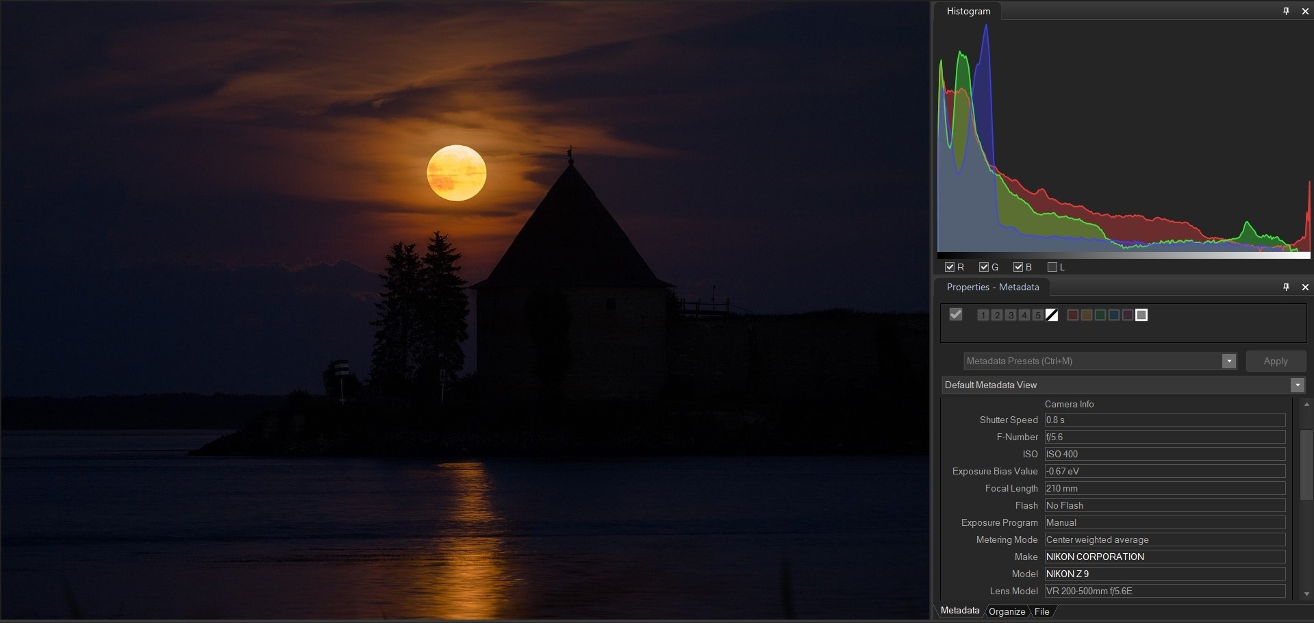 В фотоаппарате гистограмма находится в режимах просмотра кадра и, в случае с беззеркальными камерами, — прямо во время съемки. Это все настраивается через меню. Когда я снимал на зеркальные камеры, то всегда контролировал результат по этому графику. Сейчас я использую беззеркалки, и у меня во время съемки сразу на экране показывается гистограмма.